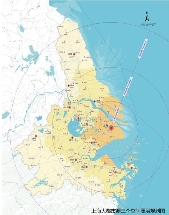 以上海为圆心、1.5小时交通距离为半径画圈,上海大都市圈范围覆盖苏州、无锡、常州、南通、盐城、泰州、杭州、宁波、嘉兴、湖州、绍兴、舟山和宣城。但是,上海大都市圈的具体范围仍有待正式成果发布。